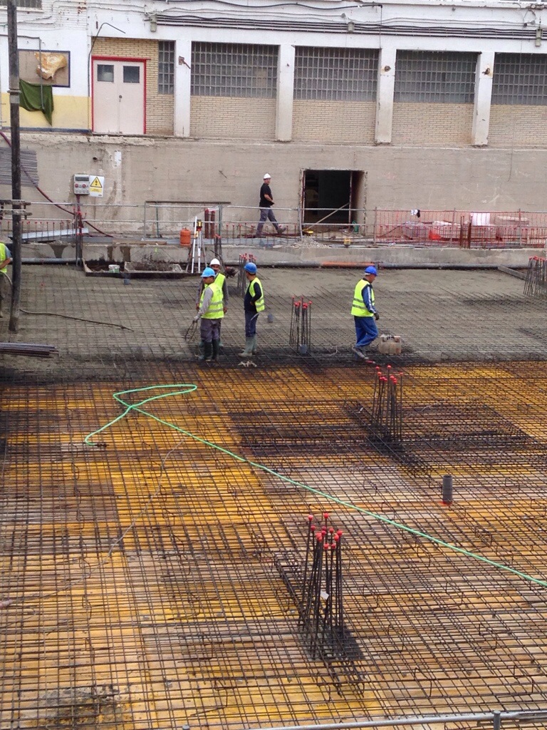 El proceso de hormigonado bajo una dirección responsable y equipo perfectamente preparados con los elementos de seguridad.
